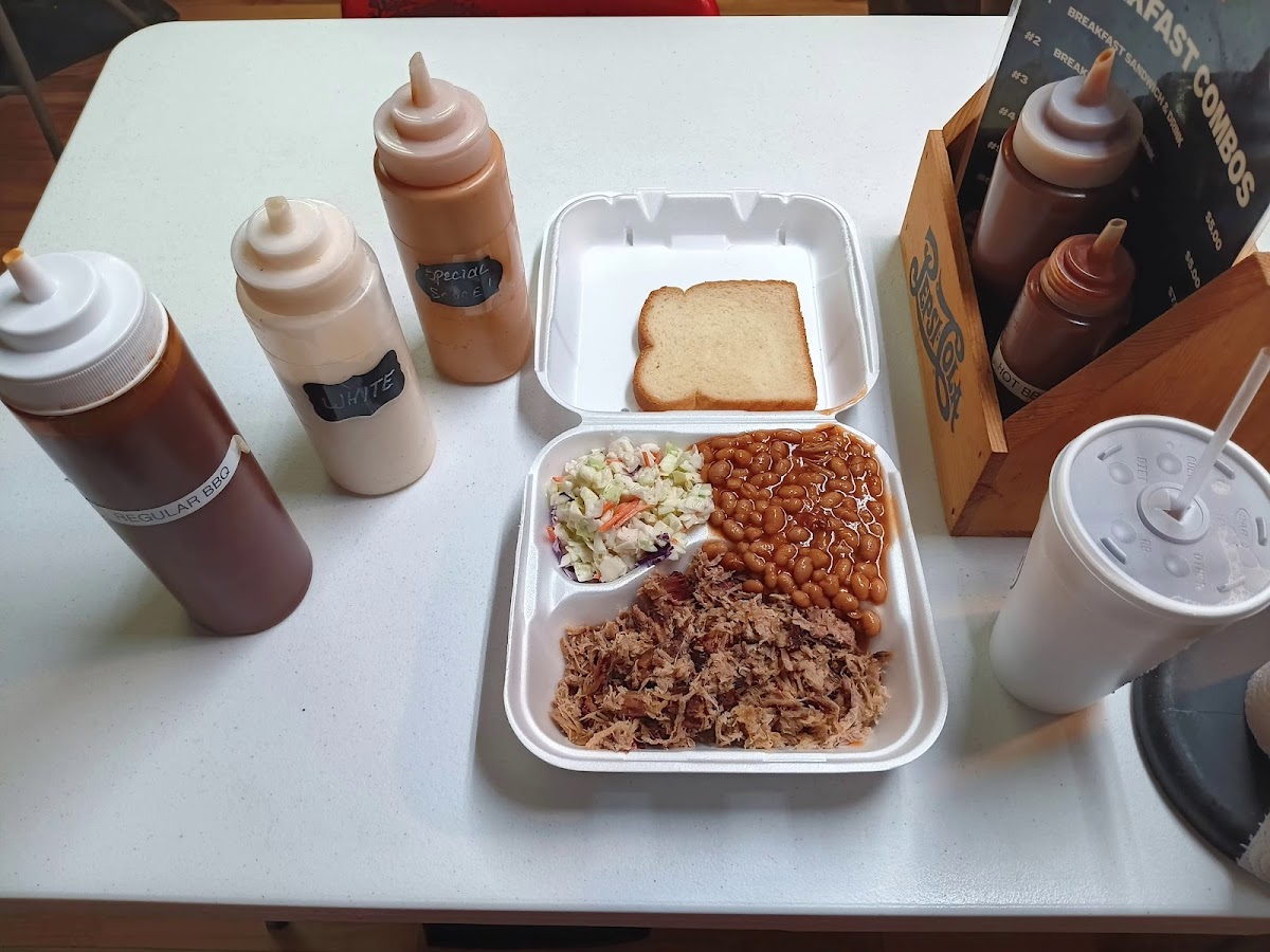Here, the rhythm of the day unspools naturally, whether you’re sliding into a cozy seat for breakfast or dropping in during the lively lunch hour. The atmosphere leans into its roots: a little rustic, a little no-frills, with a humble sense of pride in every smoked rib and pulled pork plate served. The condiment table, dotted with an array of house sauces, invites you to experiment and find your perfect balance between Carolina sweetness and a subtle smoky bite.