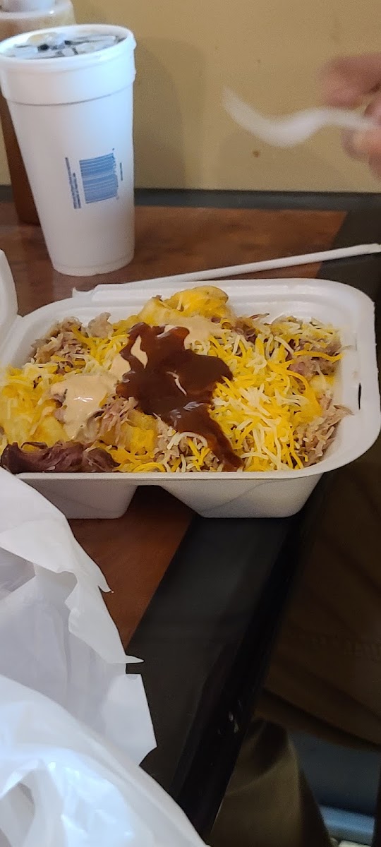 Stopped in for lunch on a drive as we passed through Montgomery and were quite pleased! Fairly busy, but not packed, around noon on the Saturday of July 4th weekend. Staff were extremely friendly and helpful, and our food was ready blisteringly fast. Indoor dining area is a bit bare bones and dim, but the extensive table of condiments, including four of their own bbq sauces, was awesome. Ordered a pulled pork plate with mac & cheese and baked beans as sides, bbq fries, and a side order of corn nuggets. The pork was great quality (especially topped with hot bbq, normal bbq, and/or white bbq sauces). The sides were good, but average. Price for everything was a bargain, though, especially for bbq!